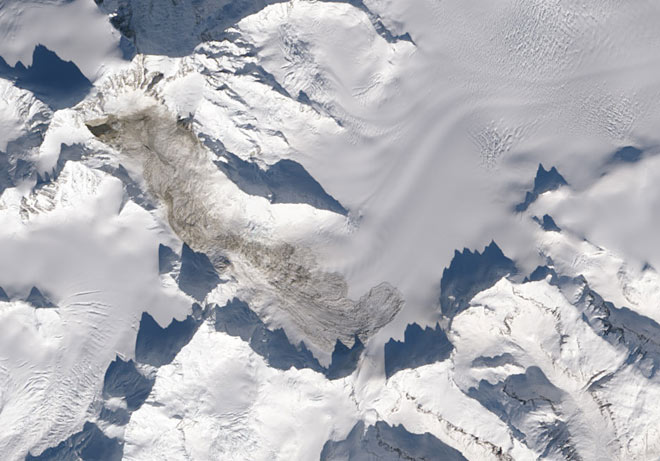 Используя снимки, сделанные спутником «Лэндсат-8», ученые подтвердили, что 16 февраля 2014 года в Юго-Восточной Аляске произошел масштабный оползень. Предварительные расчеты показали, что по склону горы Лаперуза сползли 68 миллионов тонн осадочных пород, что потенциально делает этот оползень самым крупным на Земле с 2010 года. Снимок был сделан 23 февраля. Лавина обломков — это светло-коричневые области на фоне заснеженных окрестностей. Осадочне породы двигаются в юго-восточном направлении, смешиваясь со льдом и снегом. Сейсмолог Колин Старк из Колумбийского университета считает, что сход был спровоцирован обрушением практически вертикального горного склона на высоте около 2800 метров.