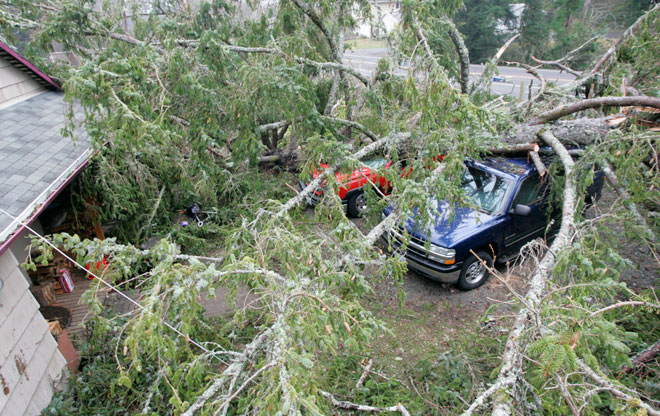 В минувший вторник на штат Орегон, США, обрушился порывистый ветер, валивший деревья и линии электропередачи. Отдельным районам города Портленд нанесен значительный ущерб. Одно дерево упало на железнодорожные пути. В него врезался поезд. Сообщений о жертвах и травмах среди пассажиров не поступало. Упавшее дерево привело к закрытию всех полос шоссе 43 для движения автотранспорта. Никто не пострадал, передает телеканал KATU. Один водитель, пытавшийся развернуться и поехать в обратном направлении, застрял в грязи на обочине шоссе. Дорога была открыта через два часа. В городе Лейк-Одвего поваленные ветром деревья повредили два автомобиля. В результате данного происшествия никто не пострада
