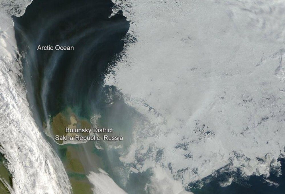 Крупные лесные пожары на востоке России привели к движению больших объемов дыма в сторону Арктики, что запечатлел космический аппарат Aqua. В восточной части России, а именно в Республике Саха (Якутия), этим летом разгорелись массовые лесные пожары. Очаги огня и дым от них уже не раз фотографировались спутниками NASA.